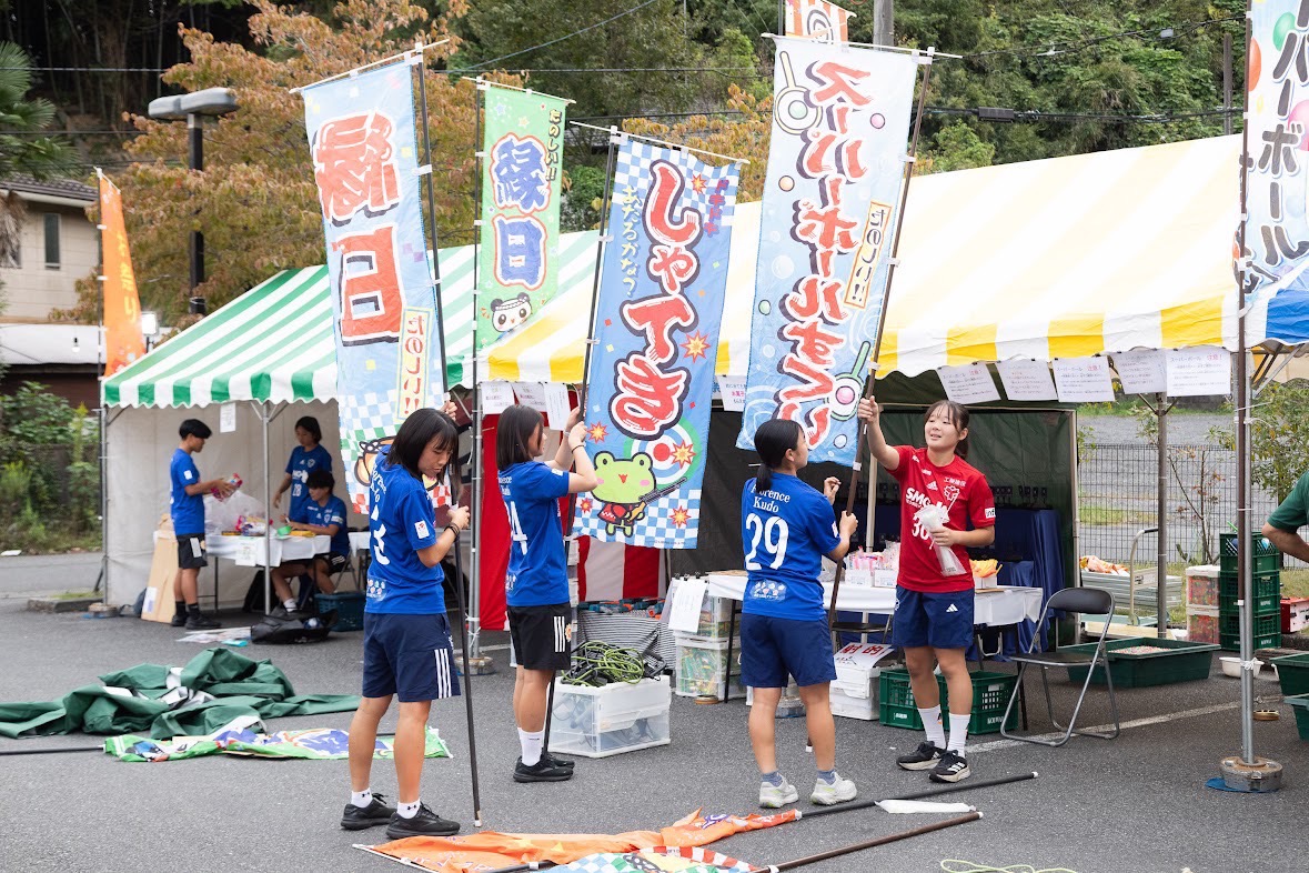 【活動報告】 10月3日(金)に開催された「おうぜんじ夜市」に森田有加里コーチ、後藤亜弥コーチ、朝倉加奈子選手、北沢明未選手、吉川はなの選手、俣野佑果選手、浅香美結選手、笠井寧々選手、太田沙季選手、岡千尋選手、林小春選手、枚田乙愛選手の12名が参加させていただきました! 「たま日吉台病院」の駐車場にて開催された「おうぜんじ夜市」では、わたあめ、射的のブースの運営に加え、日体大SMG横浜のグッズを景品としたキックターゲットブースを開き、様々な人達と関わらせていただきました。楽しくて何回もチャレンジする子供たちの姿を見ていて、たくさんの笑顔をもらいました。 今回はスポンサー様である新富士病院グループの皆様主催のお祭りということで、普段からたくさんの支援、応援してくださっている病院の関係者の方々ともたくさんお話しをする機会がありました。「いつも応援しているよ。頑張ってね!」と応援の言葉をたくさんもらい、応援してくださっている分だけもっとプレーや結果で恩を返せるように頑張っていきたいと改めて思いました。 引き続き日体大SMG横浜の応援をよろしくお願いいたします!!