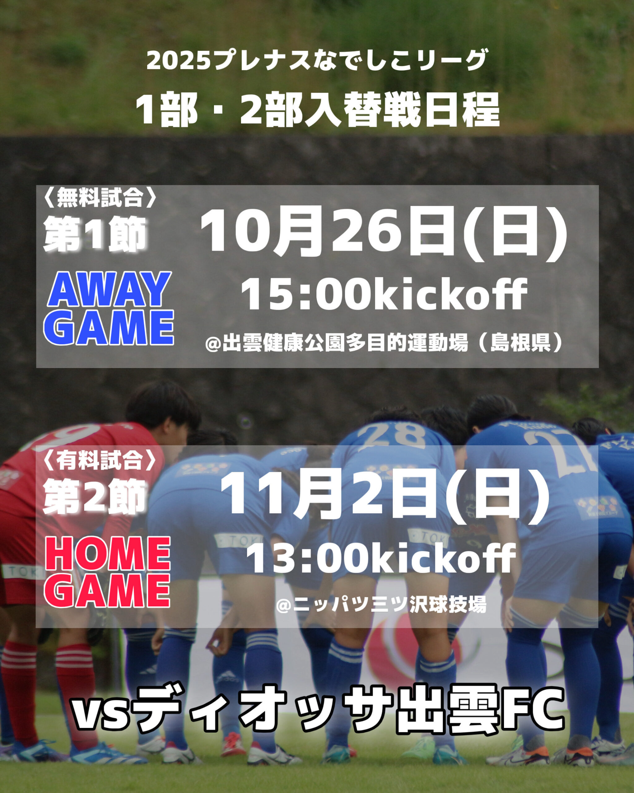 【2025プレナスなでしこリーグ1部・2部入替戦対戦相手及び日程のお知らせ】